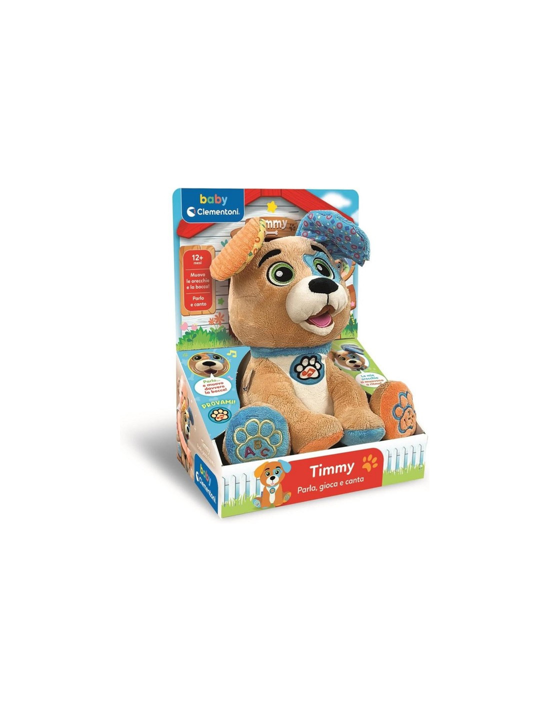 TIMMY IL CANE PARLA, GIOCA E CANTA: un peluche interattivo parlante con musica, suoni e frasi che stimolano lo sviluppo sensoriale e cognitivo, offrendo un’esperienza di gioco dolce e coinvolgente IMPARARE GIOCANDO: peluche interattivo che aiuta a sviluppare linguaggio, lallazione e curiosità attraverso canzoni, suoni e frasi in italiano; muove la bocca e le orecchie, a ritmo di musica COME GIOCARE: il cagnolino Timmy è un compagno di nanna e di gioco, e i bambini possono attivare musica e frasi con i pulsanti, ascoltando filastrocche e canzoni; insegna lettere, numeri e prime parole COSA CONTIENE: gioco interattivo per bambine e bambini dai 12 mesi in su, include un morbido cane di peluche con voce, melodie ed effetti sonori, con tessuti di diverse texture e batterie incluse